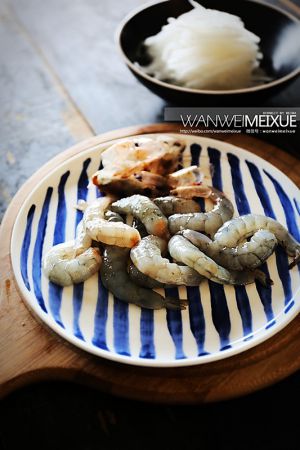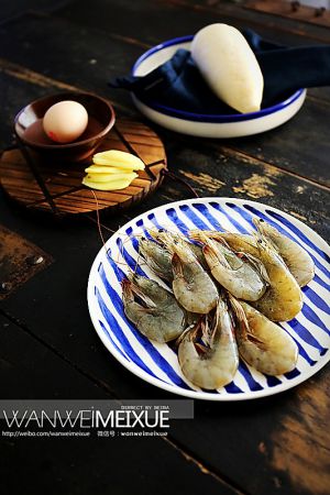 厄瓜多尔白虾去头去壳,抽去虾线;萝卜去皮切细丝备用;