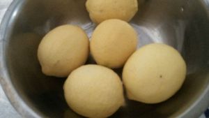 750ml玻璃容器三个柠檬的量,柠檬用盐搓洗干净,擦干。