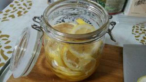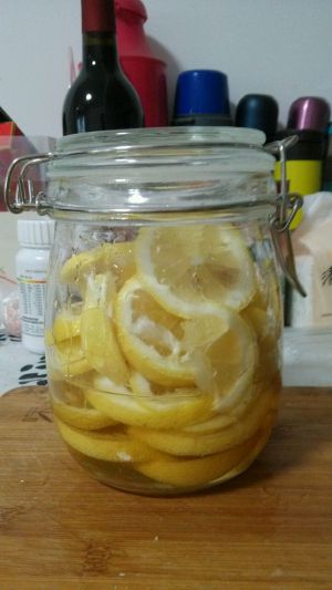 每片柠檬正反面淋上蜂蜜,置于密封玻璃罐。