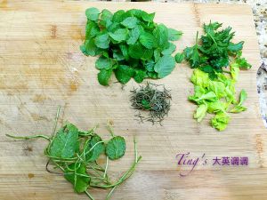 先把薄荷叶,欧芹叶取出,放一边备用。