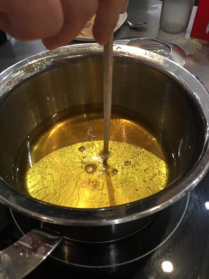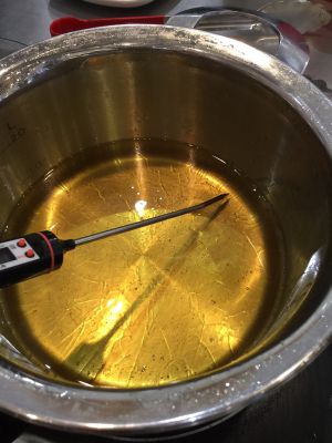 也可筷子沾少许水放入油锅周边起小水泡即可