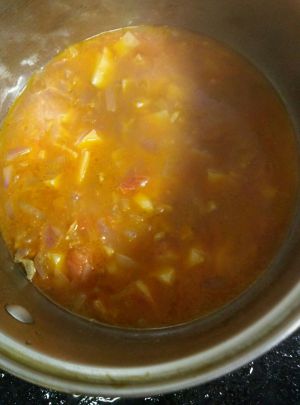 出锅前15分钟左右加入盐、冰糖、蕃茄沙司。