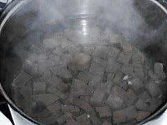 滚水焯鸭血加料酒烧滚捞岀沥干水份。