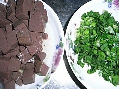 韭菜洗净切丁、鸭血切小块。