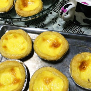 将所有材料混合打匀,过筛得到细腻的蛋挞液,倒入蛋挞皮中约八分满以防烤制过程中溢出。