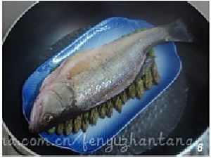 锅内烧开水,把鱼放入,大火蒸7分钟。