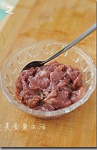 用一汤匙蚝油、半汤匙料酒、黑胡椒粉拌匀后,用半汤匙橄榄油拌匀腌制五分钟。