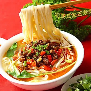 捞出装在碗底,浇上煮沸的牛肉汤撒上青菜,葱花或者香菜泡椒等做装饰,即可享用啦。
