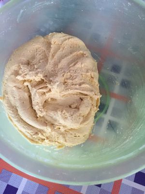 老南瓜去皮切块放冰糖隔水蒸熟。取出搅碎放水磨粉揉至团状。