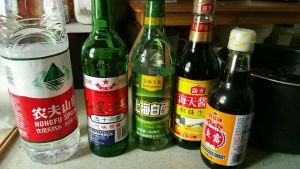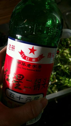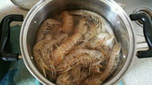 虾爬子已然很干净,我在水里加入白酒消毒一会儿.