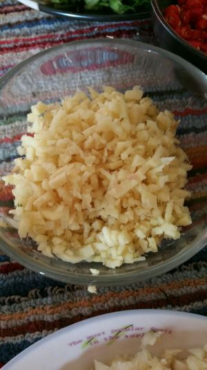 大量蒜拍好,剁碎备用,蒜不能少,可以杀菌!
