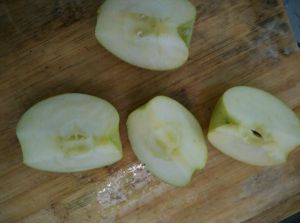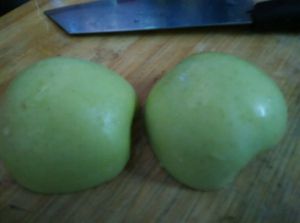 青苹果洗净对半切开。