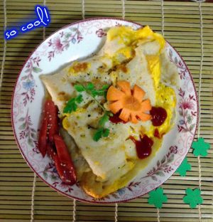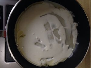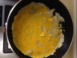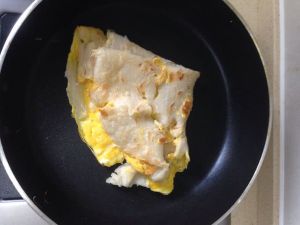 煎熟后,倒入鸡蛋,撒适量盐调味