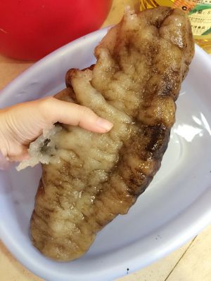 羊肚菌热水烫,泡软了就用牙刷刷一下羊肚菌的表面