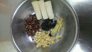 蒜粒,姜丝,花椒,大葱,豆豉备用