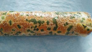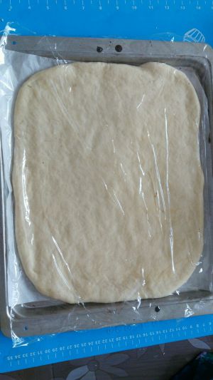 案板铺上油纸,面包倒扣,趁热撕下油纸。