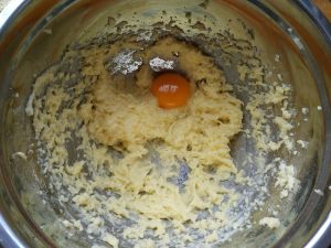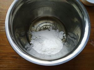 将分3次糖粉加入软化的黄油里。打发至黄油发白,轻盈。