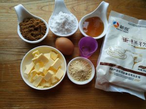 准备姜饼屋的材料:黄油100克、糖粉80克、鸡蛋50克、蜂蜜70克、低粉500克、红糖粉50克、姜粉10克。