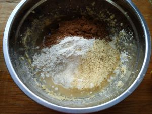 加入蜂蜜、红糖粉、姜粉和低筋面粉,和成光滑的面团。