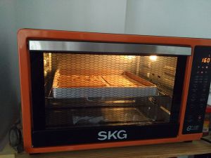 将静置好的姜饼放入预热好的烤箱里面,160度上下火,中层,烘烤15分钟。分次将姜饼全部烤好。