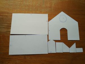 先用干净的纸画出姜饼屋的图案,再剪下来。
