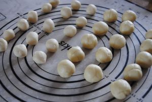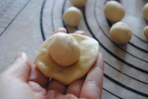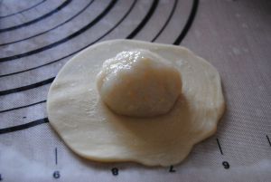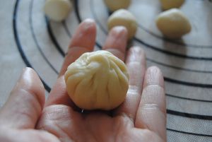 包入已经放凉的糯米馅,一定要收口包严实,不然后面会爆馅