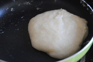 这个期间我们可以做馅,把水,糖,猪油,奶粉放入不粘锅内小火煮开