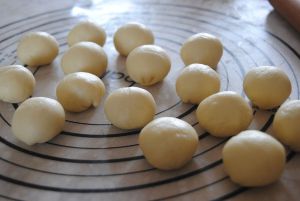 油酥和水油皮平均分成16个面团