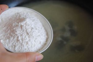 倒入糯米粉,快速拌匀成稠状