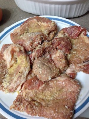 拍好的猪扒放适量的酱油、鸡粉、料酒、少许黑胡椒粉拌匀,然后放少许麻油拌匀,最后放点玉米淀粉拌匀,要按这个步骤做,因为如果先放麻油或淀粉味道就进不去。猪扒要腌制两小时或更久。