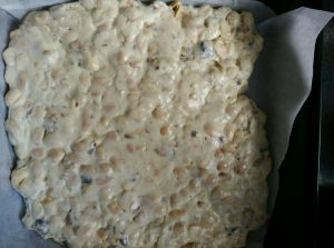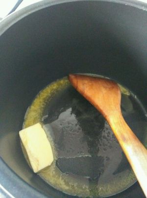 出锅了,趁热在模具里压平,没有模具的直接在桌上铺油纸擀平,油纸可以防粘