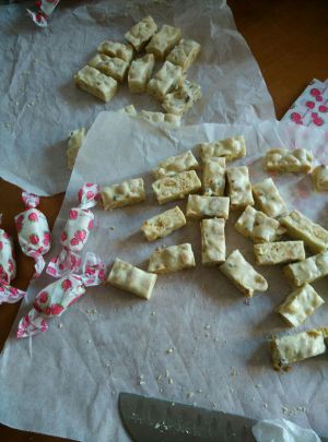 放凉后切块包装。放太硬就不好切啦,稍温还有些软的时候就可以切了