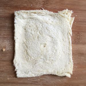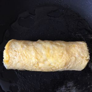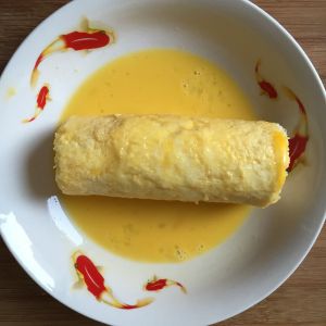 一个鸡蛋打散,将吐司卷放入鸡蛋液中充分浸透,尤其是接口处尽量浸透蛋液。