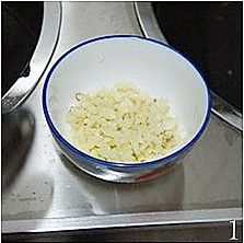 7~10步是白切文昌鸡佐料制作过程:将蒜头拍碎,放碗内。