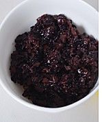 黑米20g,黑麦片10g加水200ml浸泡一夜,大枣5颗去核切碎,与黑米黑麦片一起煮至水干,黑米软糯。放凉备用。