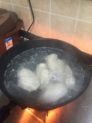 鸡胸肉白灼,大概1 0分钟,等肉全熟透