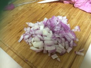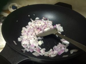 10g黄油加入锅中融化,加入洋葱中火翻炒。加入适量的盐和胡椒粉调味。