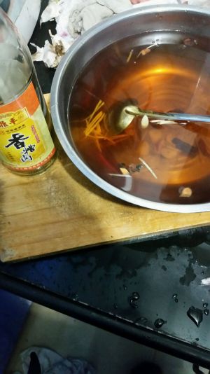 将凤爪倒入调好味道的糟卤中浸泡一晚上(4小时以上)!因为买来的糟味道比较咸,所以我将香料放入白水中煮了一会的香料水放凉后兑去成品糟卤中,味道依据个人口味而定!