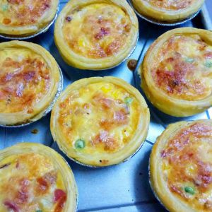 烤箱预热,把前面拌好的蔬菜丁分装到挞皮里,不要太多