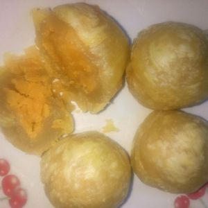 然后用莲蓉把咸蛋黄分好包入咸蛋黄,咸蛋黄得先烤熟会烘焙的这点不用我说啦,蛋挞软化把锡纸脱落两个叠一起捏好再包入莲蓉放烤箱就好啦,非常简单,我是180度烤了25分钟,根据自己家的烤箱而定,只是一时兴起发个菜单没有步骤图,方法简单所以分享给大家,味道个人觉得比蛋黄酥好吃很多