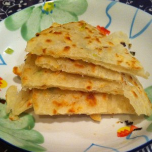 醒好的面揪成合适的剂子,擀开,越薄越好,刷上植物油,撒上盐,放上切好的葱花。卷起来,从一头开始再盘成一个圆饼。