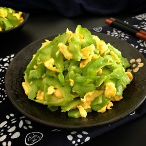 锅里烧开水后,苦瓜倒入灼水,去除草酸,不要太久,变色即捞起
