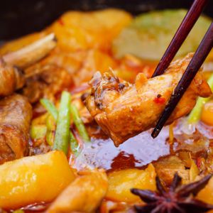 煮入味了的食材在锅里咕噜咕噜翻腾着,鸡肉的香味与辣椒、花椒等香料融为一体,满屋生香,让人忍不住吞口水