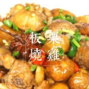 倒入少量油,将鸡块与栗子分别煎至金黄