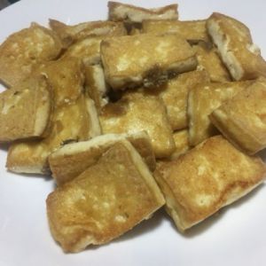 泡好的臭豆腐放到煎锅里煎成两面金黄即可。煎的时候油稍微多放一些,注意表面一定要煎黄煎脆,这就要把握火候,火不能太大,也不能过小。注意翻面的时候小心一点不要把豆腐夹碎。