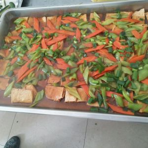 锅内少许油,葱蒜爆锅,下入胡萝卜,尖椒片,翻炒,加入,盐,一品鲜,耗油,鸡精,少许水,烧开,勾芡即可