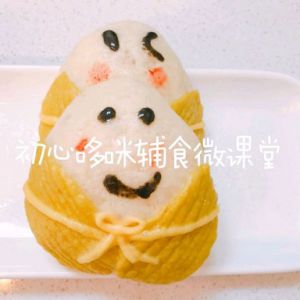 黄色的面团揉成细细的长条,围在馒头上,做出蝴蝶结的形状