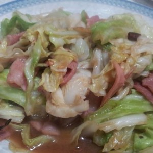 翻炒至至包菜熟透,主要看包菜菜梗部分变色透明即可,