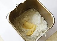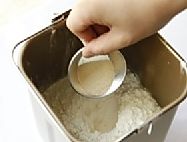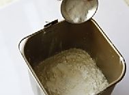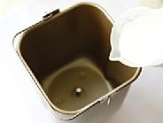 搅拌刀预先装好,把牛奶倒进面包桶。