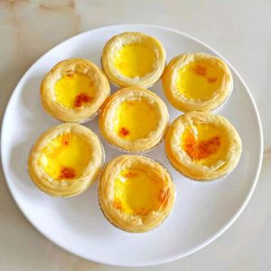 把倒入好的蛋挞入烤箱内,烤箱预热上下温度210度18分钟左右就可以出炉了。